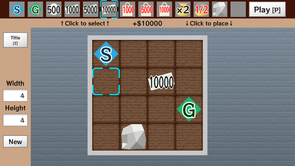 - SやGが各1個だけの状態で、ツールバーの「プレイ」からプレイテスト