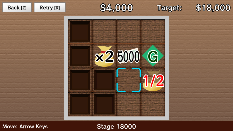 - You cannot go through rocks, cells you passed, or items that fall your money below zero.