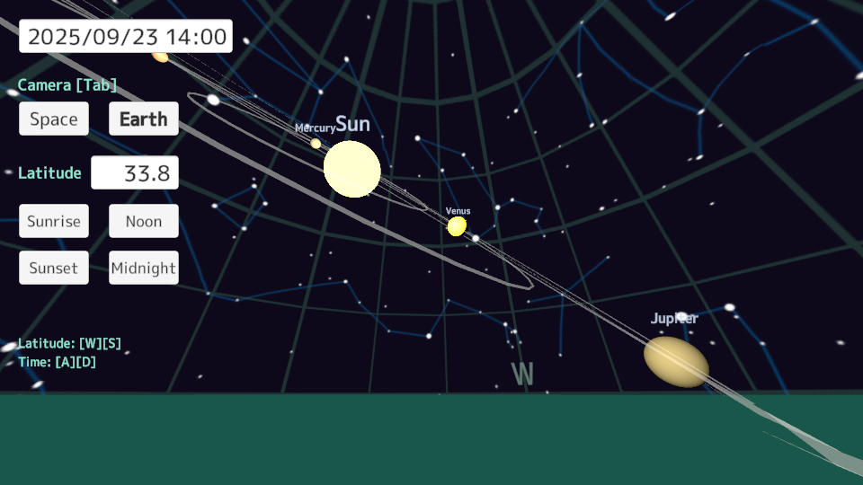 太陽系の惑星(水星・金星・地球・火星・木星・土星)の動きを再現!