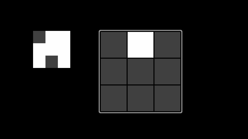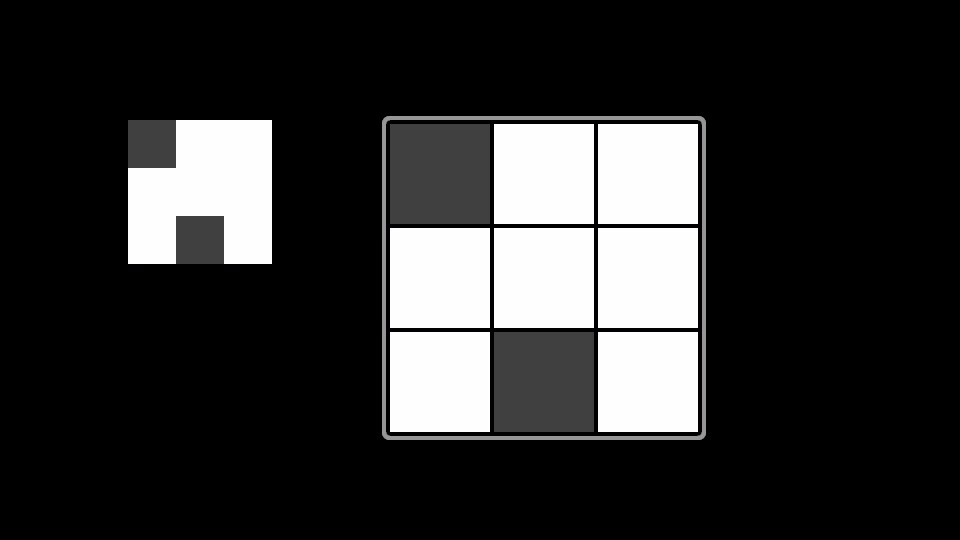 盤面上のいくつかのマスを白くして、左側の見本の形を作ろう!